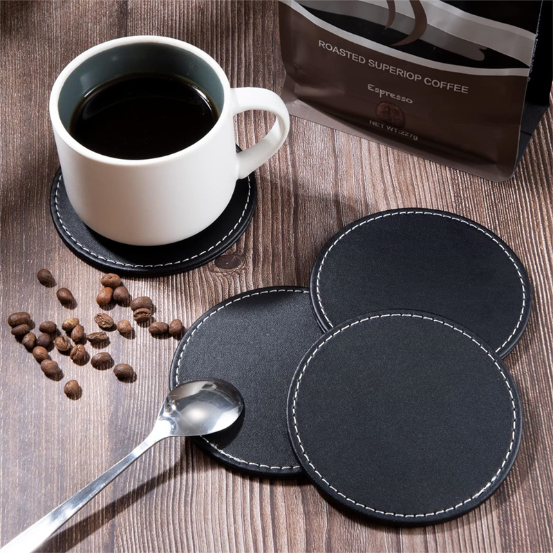 5879 Siyah Deri Bardak Altlığı 4'LÜ SET